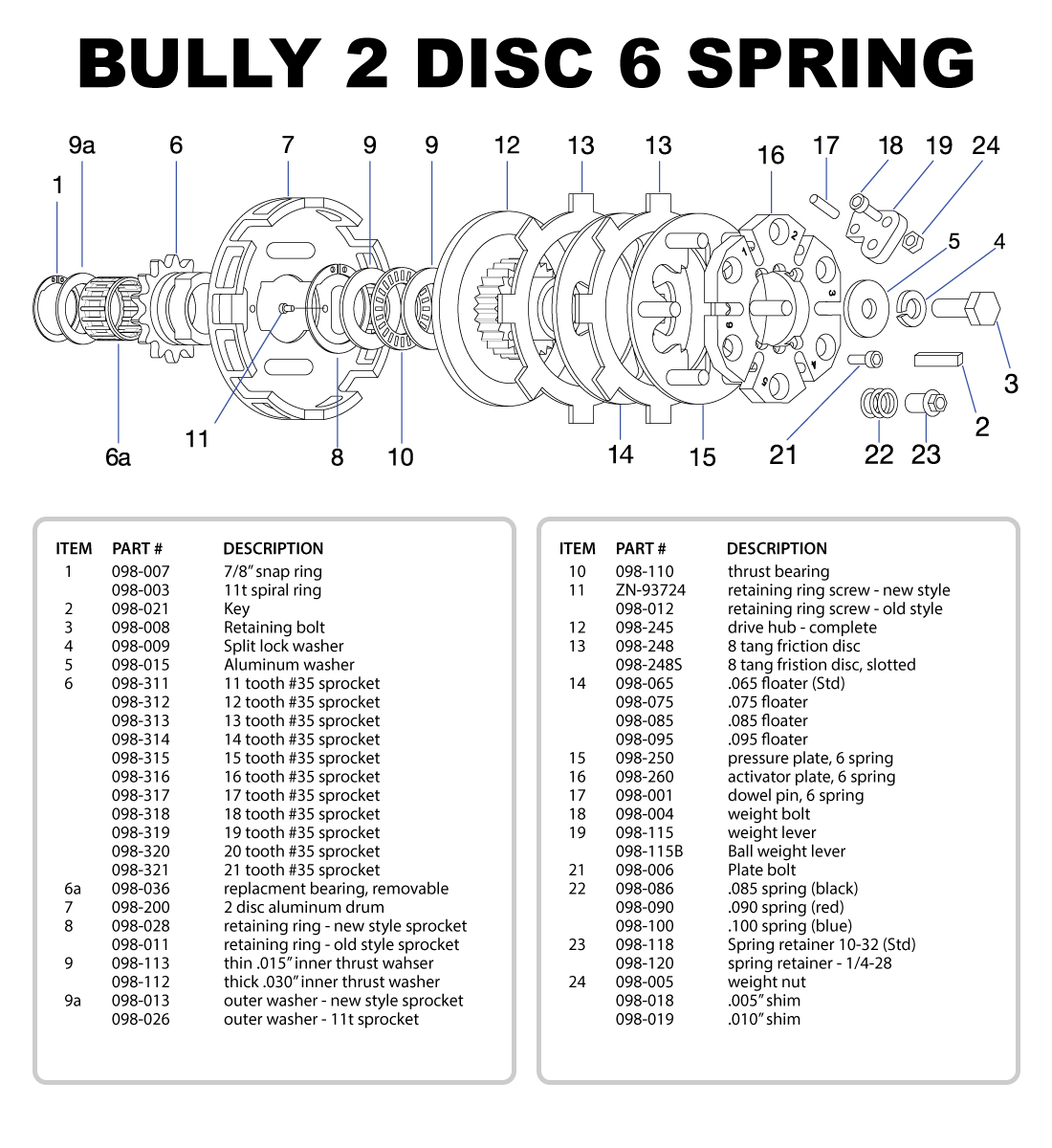 Bully Adult Stock, 21T, 2 Disc 6 Spring