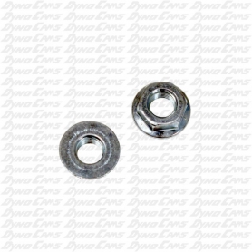 This is a standard lug nut with a smooth flange. It fits a 7/16" socket and has a 1/4" x 28 thread.