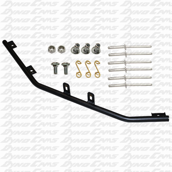 CHARGER Racing Chassis' front body mount kit includes 3 Dzus springs, 3 Dzus buttons, 2 bolts, 2 nuts, and 6 rivets. This kit works with the Prodigy and Prodigy Cadet chassis.