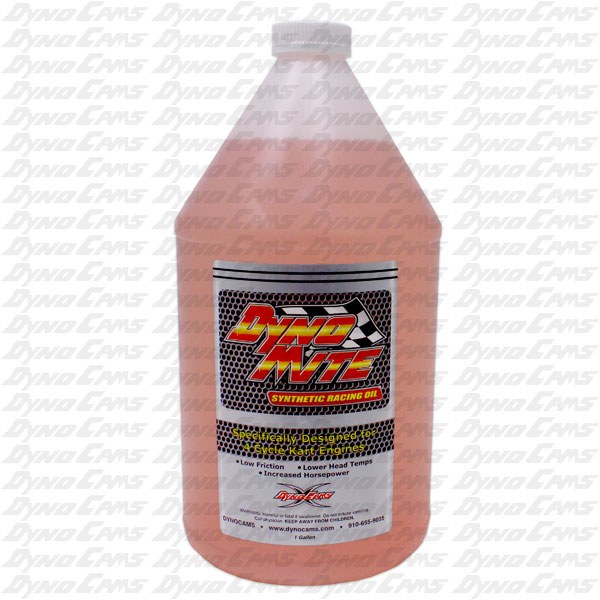 DynoCams' DynoMite Synthetic Racing Oil is specially formulated for 4-stroke race engines. It is lightweight and produces horsepower while withstanding the demands of all stock-level small engine applications. It works with both methanol and gasoline, and it blends well in engines which have previously ran Dyno K Oil. This oil offers an affordable option while remaining highly competitive.