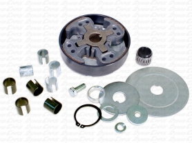 - The Inferno Fire clutch is fully tunable and has a bonded friction lining that improves consistency and performance. The friction material has been engineered to have a dynamic coefficient of friction that is very close to the static coefficient of friction. This creates a flatter engagement profile with less engine bogging during lock-up. The racer can utilize the optional weights to fine tune the clutch to keep the rpm in a band close to peak engine torque. This is very important for sprint racing to get the best acceleration off the corners. The friction lining prevents the drum surface from galling so no sanding is needed inside the drum. Other features include the needle bearing design, grease trap and drum vents. The grease trap is engineered to catch any grease or oil that comes out of the bearing. The added radial vents allow any debris to quickly exit the clutch without getting trapped under the shoes. Less contamination in the clutch gives better consistency and performance. It is recommended to add the optional weights in classes weighing 400# or over for additional torque capacity. This product now comes with needle bearings for updated sprockets.